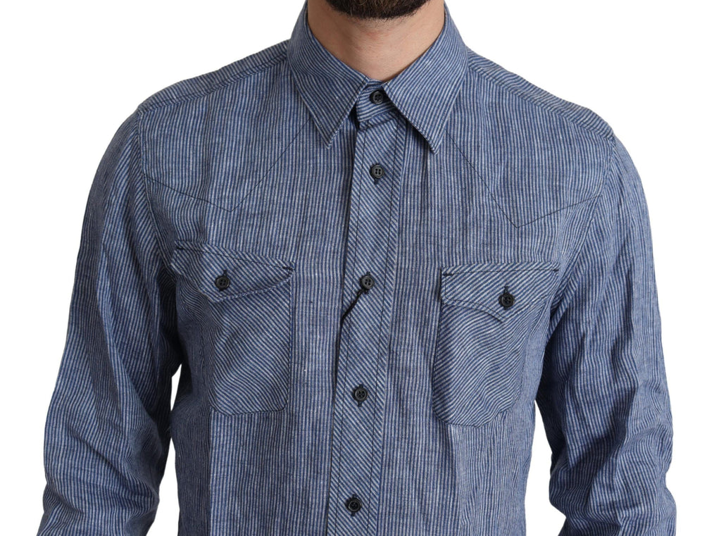 Absolutely stunning, 100% Authentic, brand new with tags Dolce & Gabbana GOLD button down casual shirt with stripes features a spread collar, long sleeves and full button closure.