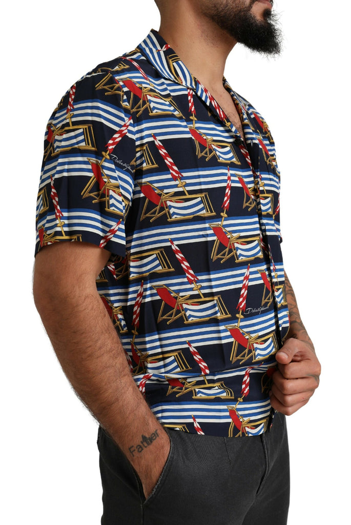 Absolutely stunning, 100% Authentic, brand new with tags Dolce & Gabbana silk casual shirt. The model has a classic neck, short sleeves and a button down closure.