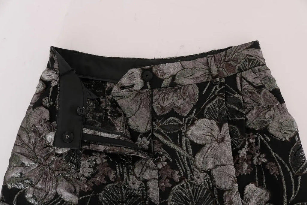 Dolce & Gabbana Gray Floral Brocade High Waist Shorts
