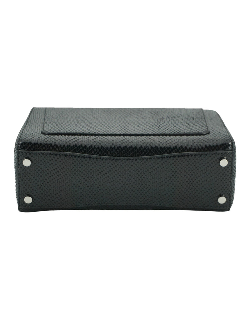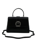 Details: Handbag realised in calf leather. With removable leather shoulder strap and magnetic button closure under the flap. With Cristal detailed hardware. Three main compartments and internal zip pocket.