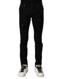 Dolce & Gabbana Black Cotton Logo Plaque Slim Denim Jeans