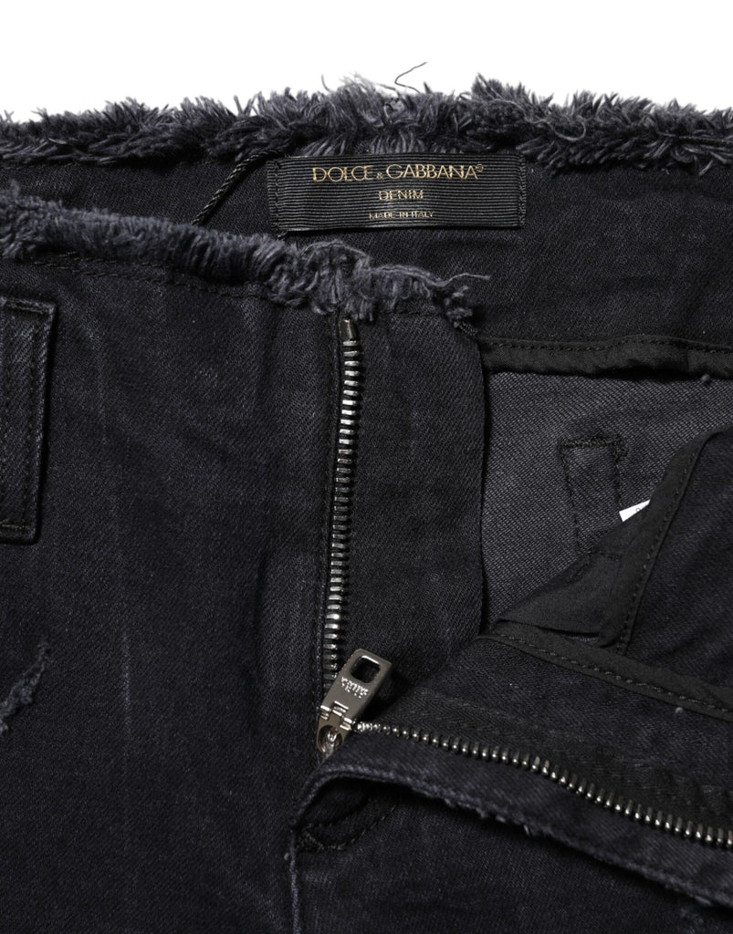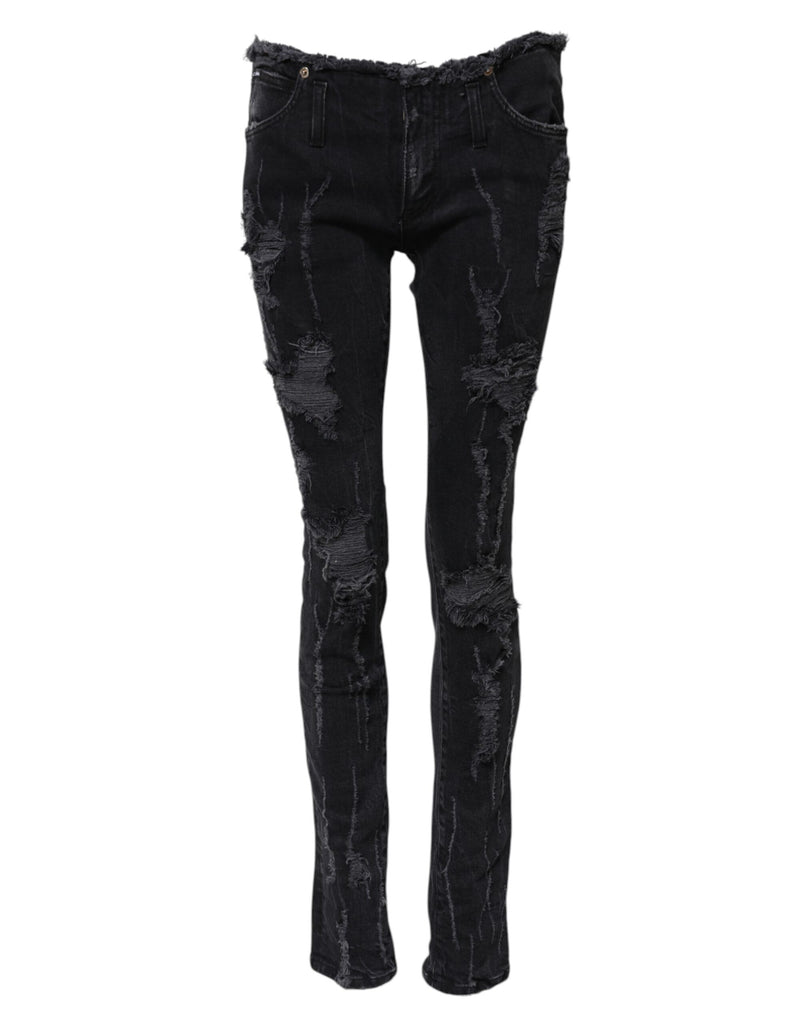 Gorgeous brand new, 100% Authentic Dolce & Gabbana skinny mid waist tattered denim jeans with DG logo plaque. Color: Black Model: Skinny jeans Material: 100% Cotton Zipper closure Logo details Made in Italy Very exclusive and high craftsmanship