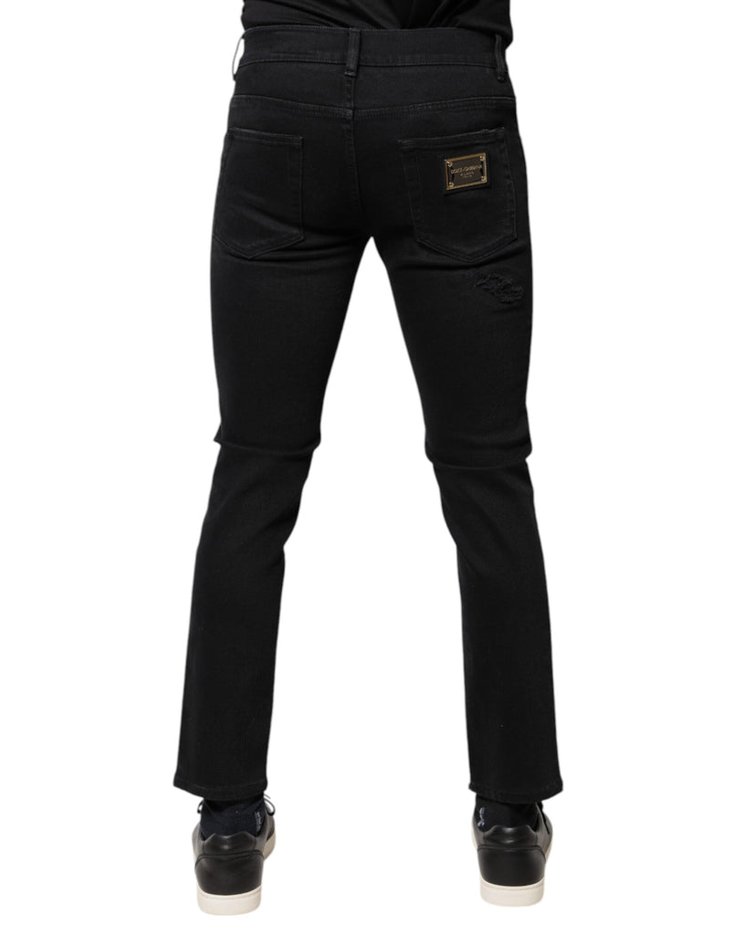 • Name : Dolce & Gabbana Black Cotton Tattered Skinny Denim Logo Jeans