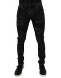 Gorgeous brand new, 100% Authentic Dolce & Gabbana cotton tattered denim jeans features a zipper and button closure.