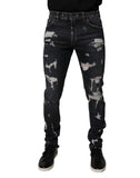 Gorgeous brand new, 100% Authentic Dolce & Gabbana cotton skinny tattered denim jeans.