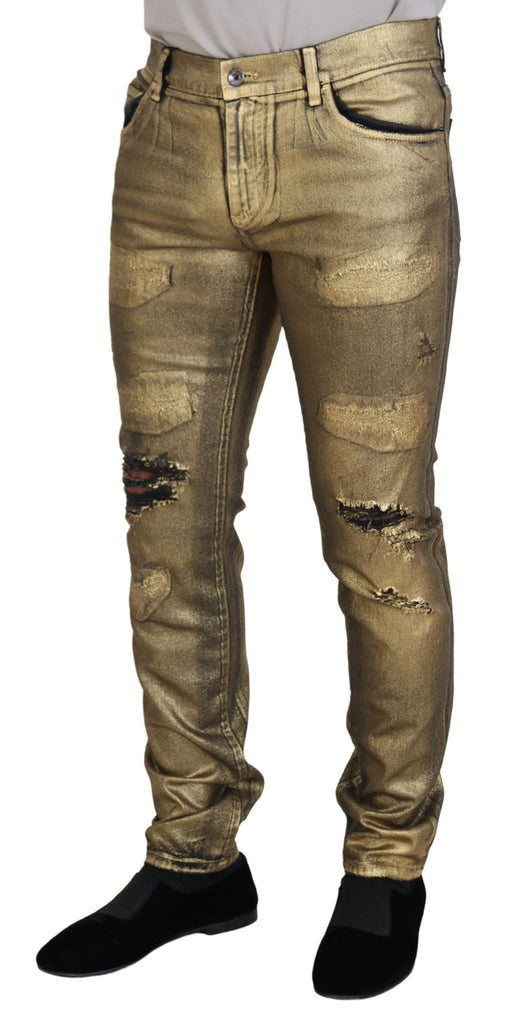 Dolce & Gabbana Gold Cotton Tattered Skinny Men Denim Jeans
