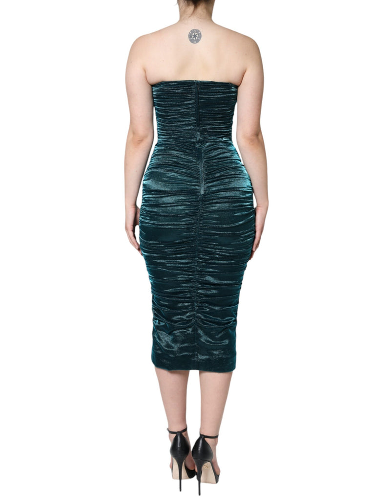 Dolce & Gabbana Green Silk Blend Satin Fitted Strapless Dress