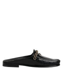 Gorgeous brand new, 100% Authentic Dolce & Gabbana slip on open-back shoes come in calfskin upper with a gold tone chain GD logo band.