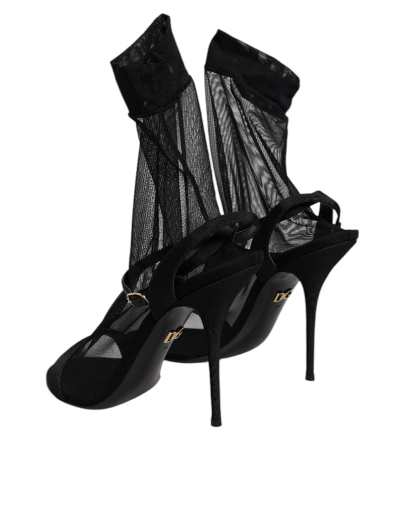 Dolce & Gabbana Black Tulle Stretch Heels Sandals Shoes