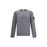 Wool Sweater by Stone Island featuring a ribbed crew neck, a logo patch applied to the left sleeve and ribbed trim at the cuffs and hem. The monochrome design enhances the clean lines of the garment, perfect for a casual yet polished look.