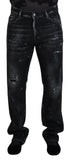Dsquared² Black Crystal Embellished Tattered Denim Jeans