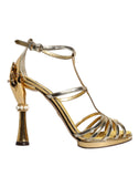 Dolce & Gabbana Gold Leather Baroque Heels Sandals Shoes