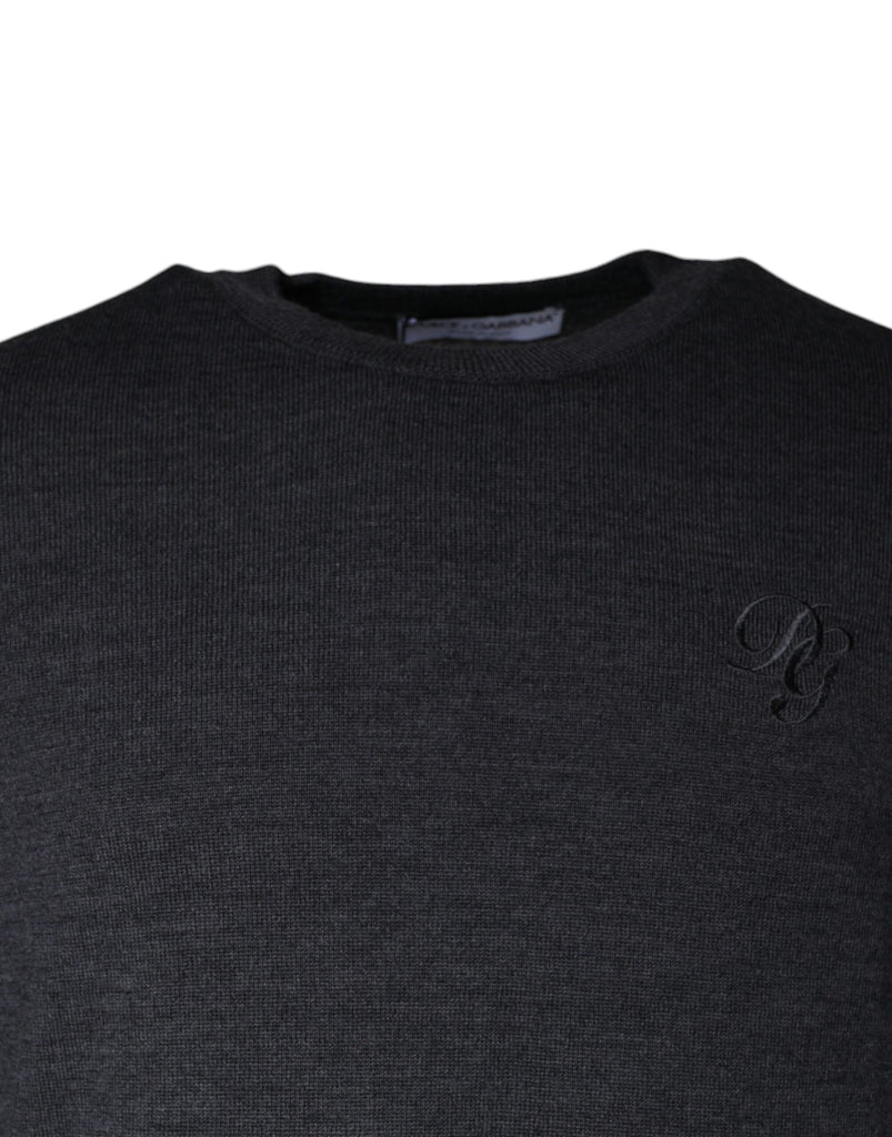 Dolce & Gabbana Dark Gray Wool Crew Neck Pullover Sweater
