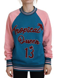 Gorgeous brand new with tags, 100% Authentic Dolce & Gabbana sweater, Model: Pullover crewneck sweater Color: Pink and blue Sequined Tropical Queen 13 Logo details Made in Italy Material: 100% Cotton