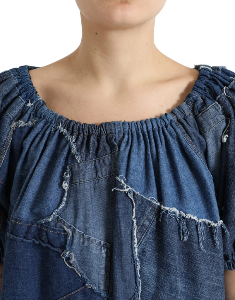 Dolce & Gabbana Blue Patchwork Short Sleeves Denim Blouse Top