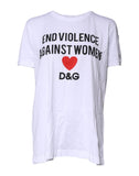Dolce & Gabbana White Cotton Printed Round Neck Top T-shirt