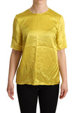 Gorgeous brand new with tags, 100% Authentic Dolce & Gabbana women silk t-shirt features a round neck, short sleeve and back closure with fastening buttons.