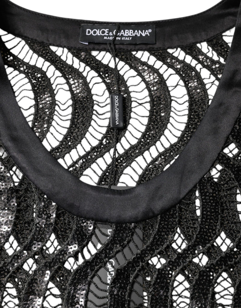 Gorgeous brand new with tags, 100% Authentic Dolce & Gabbana sequined tank top. Model: Round neck top Colour: Black Material: 100% Polyester Logo details Made in Italy