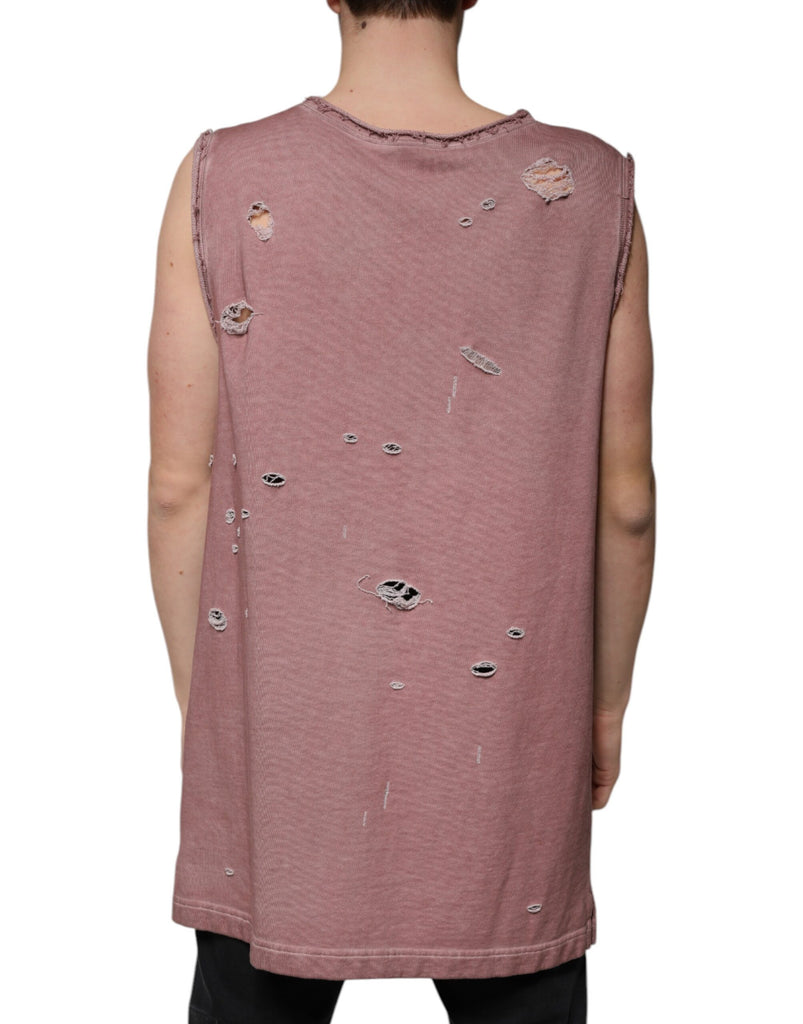 Dolce & Gabbana Brown Cotton Round Neck Sleeveless T-shirt