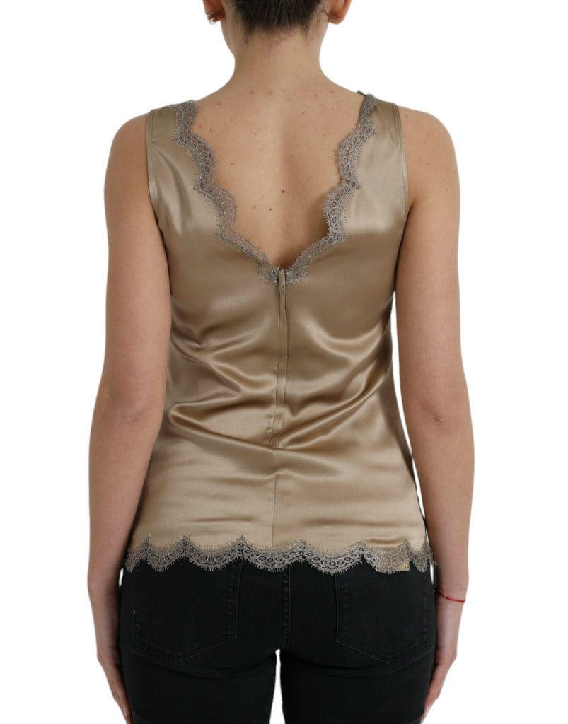 Gorgeous, 100% Authentic Dolce & Gabbana v-neck sleeveless tank top with lace trim. Crafted from acetate blend.