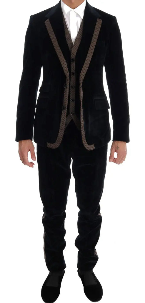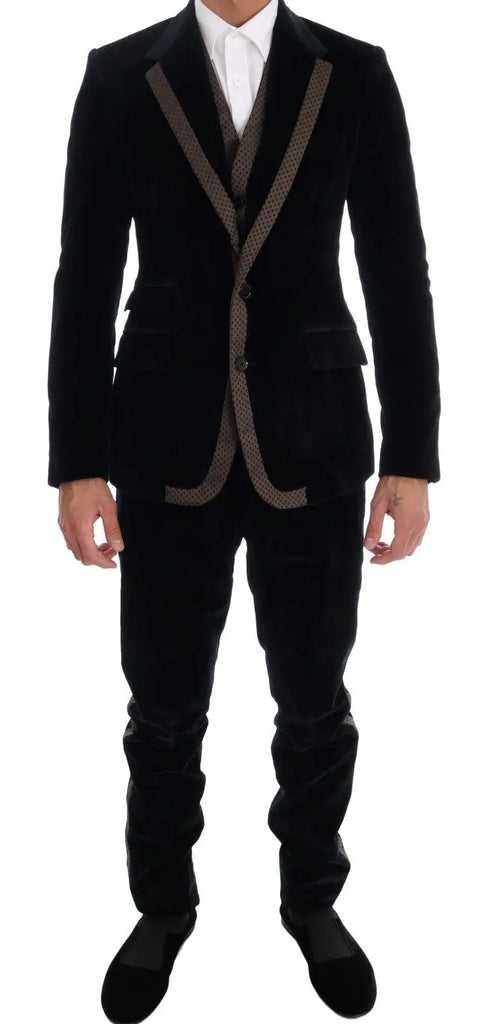 Dolce & Gabbana Blue Velvet Two Button Slim 3 Piece Suit