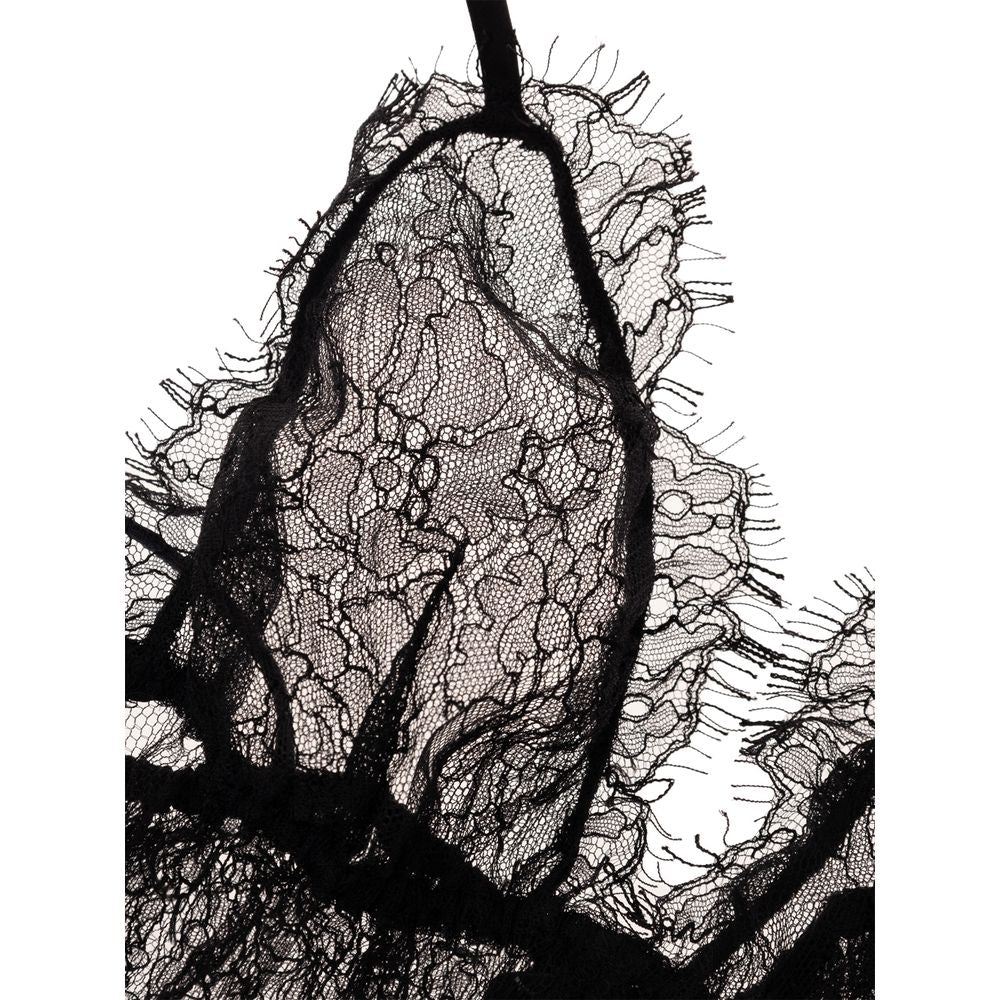 Tom Ford Black Lace Top. Allover lace triangle top, elasticized cord and shoulder straps, open front. Composition: 59% Polyamide, 41% Viscose Internal SKU: 25MG08 Brand SKU: TS2035FAX1031LB999