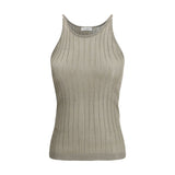 Brunello Cucinelli’s Lurex Tank Top is an essential garment with an elegant and contemporary spirit. The ribbed design enhances the line of the body with a fitted and refined fit, while the lurex fabric gives a delicate luminosity, perfect for adding a sophisticated touch to even the simplest looks. The low-cut cut with thin straps discreetly accentuates the shoulders, and the ribbed hems complete the garment with a clean, curated finish.
