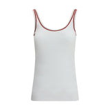 Brunello Cucinelli’s Top is an essential yet refined garment that expresses the discreet elegance and craftsmanship typical of the maison. Made with a refined ribbed design, it sits naturally on the silhouette, enhancing it with sobriety. The round neckline is embellished with delicate contrasting details and a row of shiny jewels along the seams, the brand’s distinctive signature, adding a bright and sophisticated touch without being excessive.