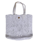 Gorgeous brand new, 100% Authentic Dolce & Gabbana Beatrice tote bag is a must-have for your summer portfolio. Characterised by its fine cordonetto lace profile – a traditional Sicilain fabric – the bold accessory features the Maisons signature heart motif both within the lace and the hardware.