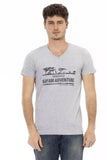Step into the vibrant world of high-fashion with Trussardi Action’s sleek and modern gray T-shirt. This is no ordinary tee; it’s a statement. The refined short sleeves and V-neck design marry casual comfort with chic style, while the bold front print captures the essence of the trendsetting spirit. Crafted from a premium blend of cotton and viscose, this T-shirt ensures a soft touch and breathable wear. Perfect for the fashion-forward man, this piece elevates any outfit to an expression of contemporary elegance.
