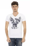 Elevate your wardrobe with the effortless sophistication of Trussardi Action’s Short Sleeve T-shirt. Tailored for the discerning modern man, this piece exudes a bold yet minimalist charm. With a crisp white palette, it amplifies your day-to-night ensemble, ensuring that timeless style meets contemporary craftsmanship. Adorned with a distinct front print, this V-neck tee is the epitome of trendy casuals.