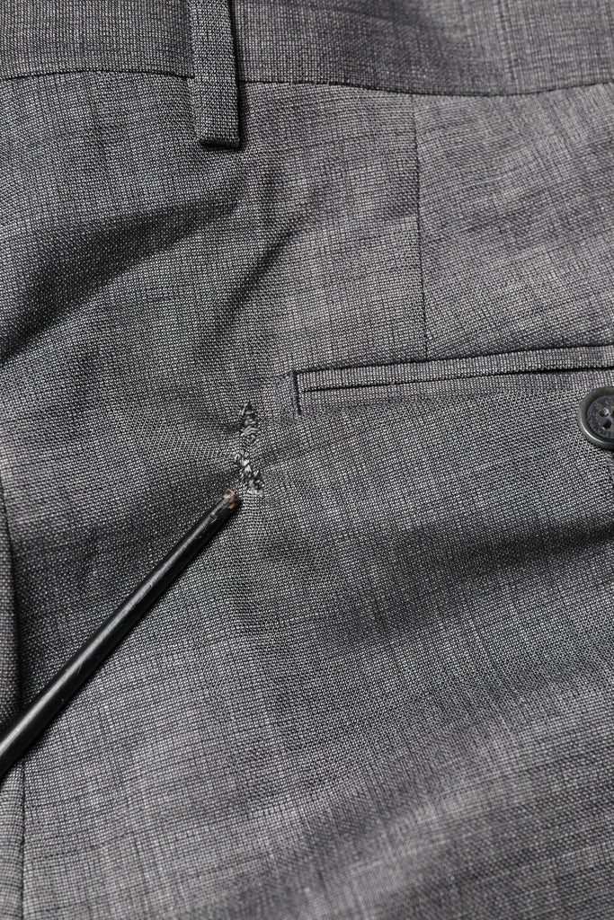 This item has a minor defect, there are repaired rips on the back side of the pants (see pictures for details).