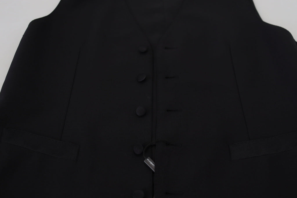 Dolce & Gabbana Black Virgin Wool Waistcoat Formal Vest