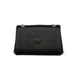 NOELLE BAG, 2 CHAIN SHOULDER HANDLES, 1 EXTERNAL POCKET, 3 COMPARTMENTS, 1 INTERNAL POCKET, INTERNAL SPACES FORMED BY CARDS, CONTRAST DETAILS, SNAP CLOSURE, LOGO