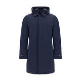 Carcoat Down Jacket by Woolrich, high-neck model with drawstring-adjustable and removable hood, double-layer closure by zipper and button flap on front, adjustable button cuffs, two zippered welt pockets, all-over quilted and padded design, monochrome pattern, regular fit.