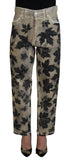Dsquared² Beige Leaves Cotton High Waist Denim Jeans Boston