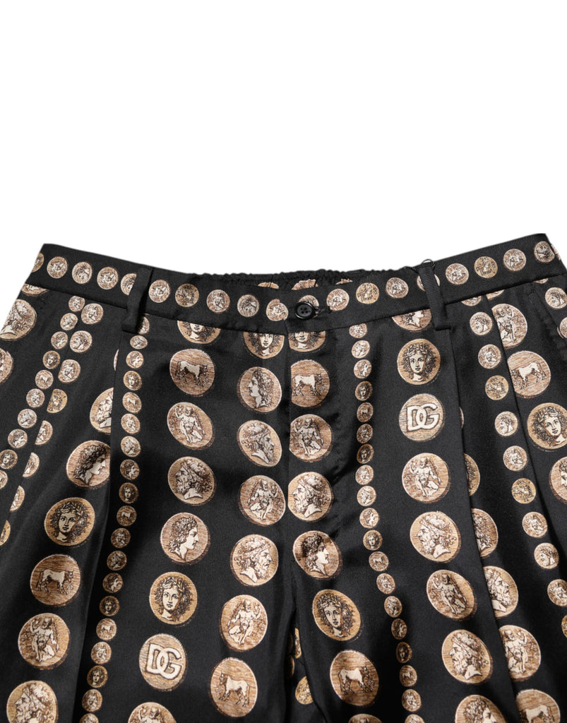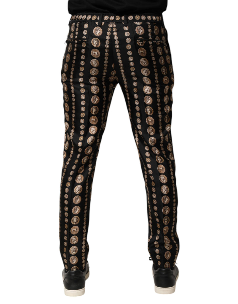 Dolce & Gabbana Black Coin Print Silk Skinny Men Trouser Pants