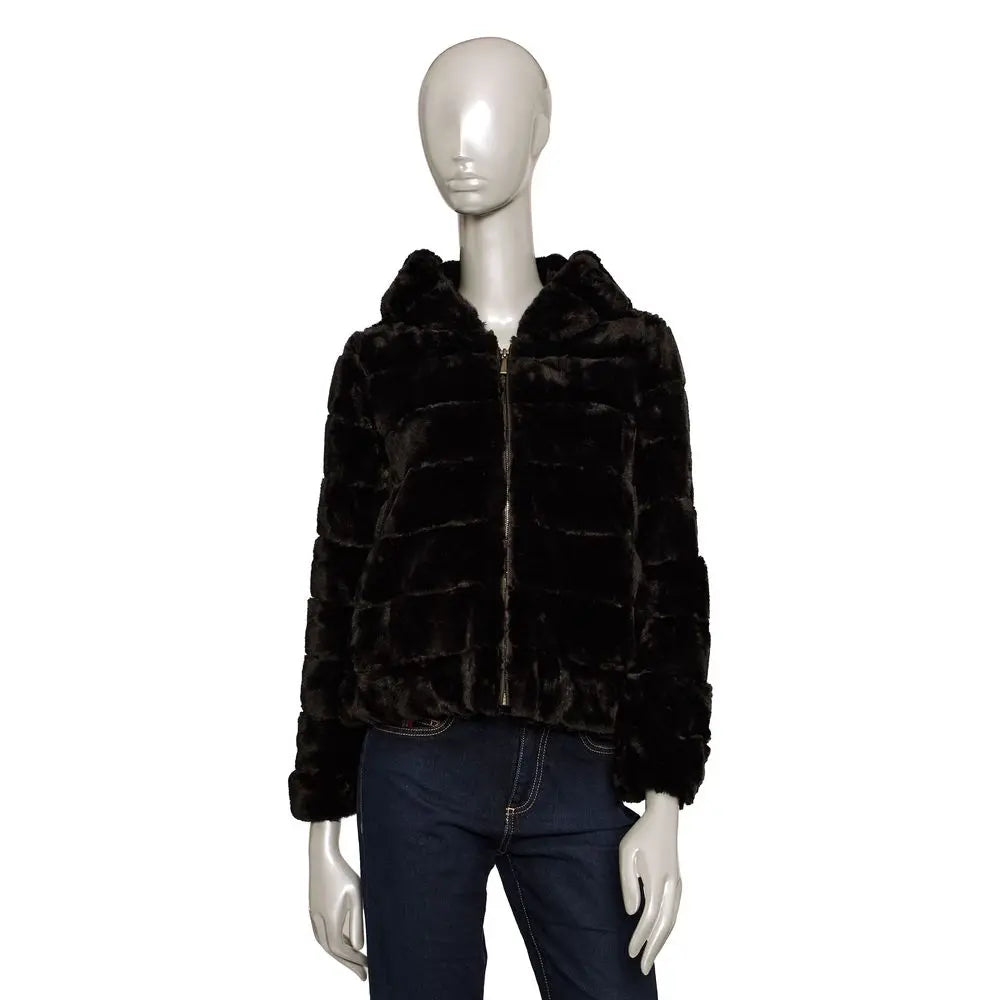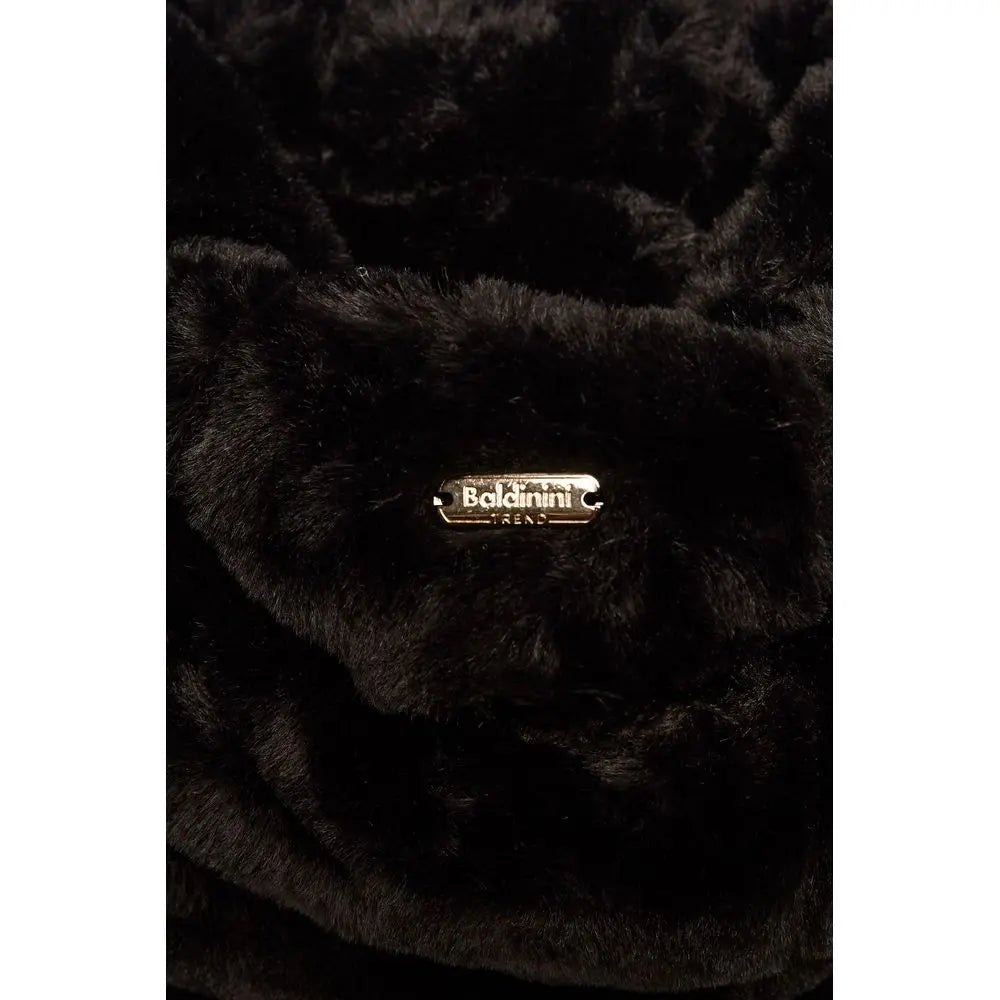 Elevate your style with Baldinini Trend’s short eco-fur jacket, a true reflection of bold sophistication. Crafted with meticulous attention to detail, this jacket features a sleek front zip closure, complemented by the iconic metal Baldinini Trend monogram, exuding elegance in every stitch. Its luxurious black polyester fabric not only ensures durability but also promises a statement-making entrance wherever you go. Perfect for fashion-forward women who dare to stand out.