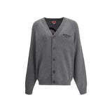 Kenzo’s Boke Flower Cardigan, made from a fine blend of cotton and wool, combines tradition and modernity with a richly detailed design. Featuring a V-neckline and raglan sleeves, it offers a relaxed and comfortable fit. The front closure is complemented by personalized buttons with KENZO Paris branding, while the same logo is embroidered on the chest, accompanied by embroidered inserts and motifs that enhance the garment with a graphic and distinctive touch. A versatile and refined cardigan, perfect for adding personality to everyday looks.