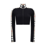 Cynthia Sweatshirt by Burberry, cropped turtleneck design, front zipper closure, stretch design, bands with the brand’s iconic Archivio Check pattern, slim fit.