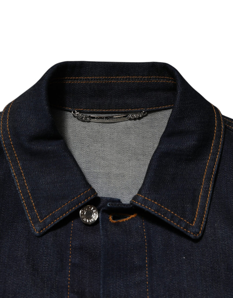 Absolutely stunning, 100% Authentic, brand new with tags Dolce & Gabbana denim jacket. Crafted from premium indigo blue cotton denim, it features a slim fit silhouette, bold contrast stitching, silver-tone logo-engraved buttons, and signature DG logo patch embroidery on the chest. A timeless staple for elevating any smart-casual outfit.