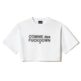 Unapologetically bold and effortlessly chic, this Comme Des Fuckdown white T-shirt is the epitome of street-style luxury. Boasting the brand’s provocative logo front and center, this cotton masterpiece will turn heads and set trends. Perfect for the fashion-forward individual ready to make a statement.